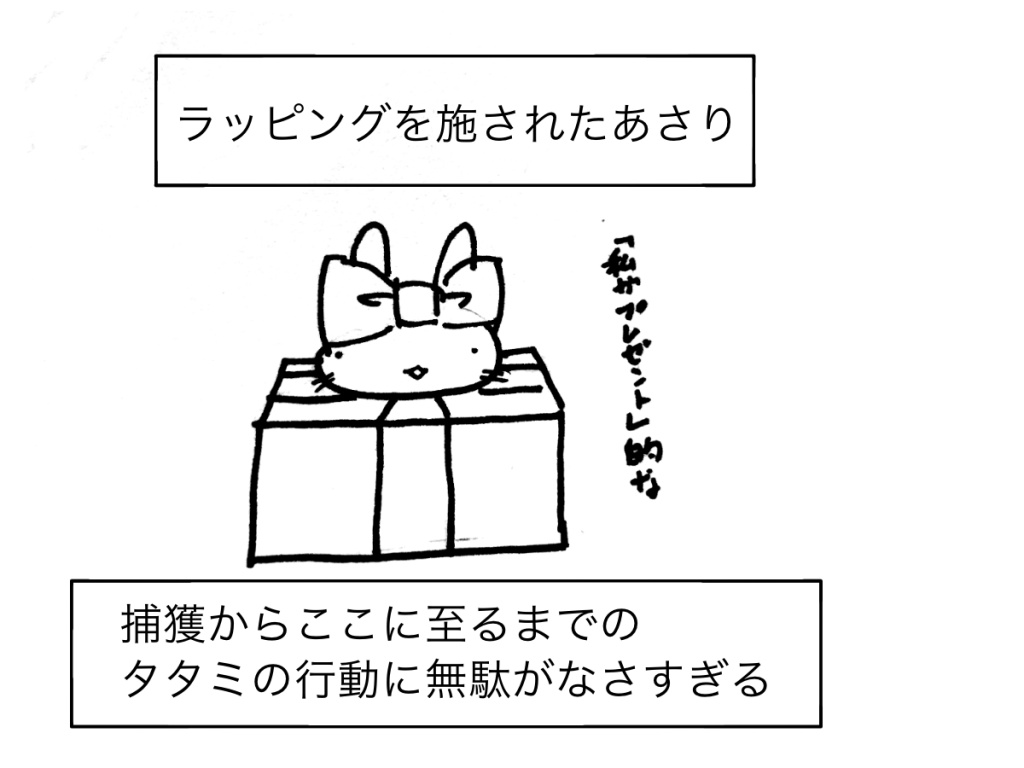 あさりが一番懸念してたのは、ニンジン地獄。生ニンジンやらニンジンジュースやらを口に突っ込まれたりする事を想像してましたが終始そんな様子はありませんでした。あや子ちゃんはあさりに優しく接してくれた上、お土産にジグソーパズルまで持たせてくれます。あさりは帰宅後タタミに、あや子ちゃんてほんとは優しいんだねと上機嫌で話します。が、このお土産のジグソーパズルがオチになってて、あさりはすぐに前言撤回。
